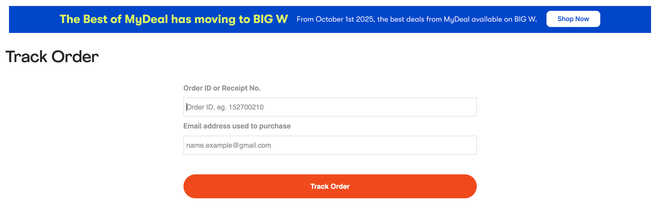 https://www.mydeal.com.au/account/trackorder - Enter Your Details: Input the Order ID and the Email Address used for the order.