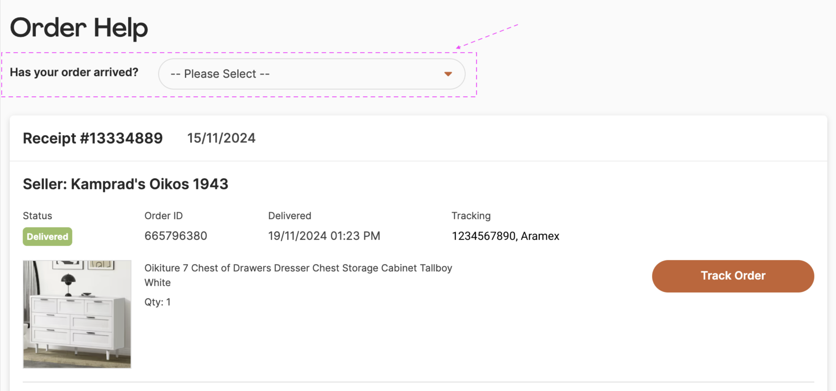 - Submit Your Enquiry: Once your order loads, click the "Order Help" button next to the item to open a support ticket with the seller.